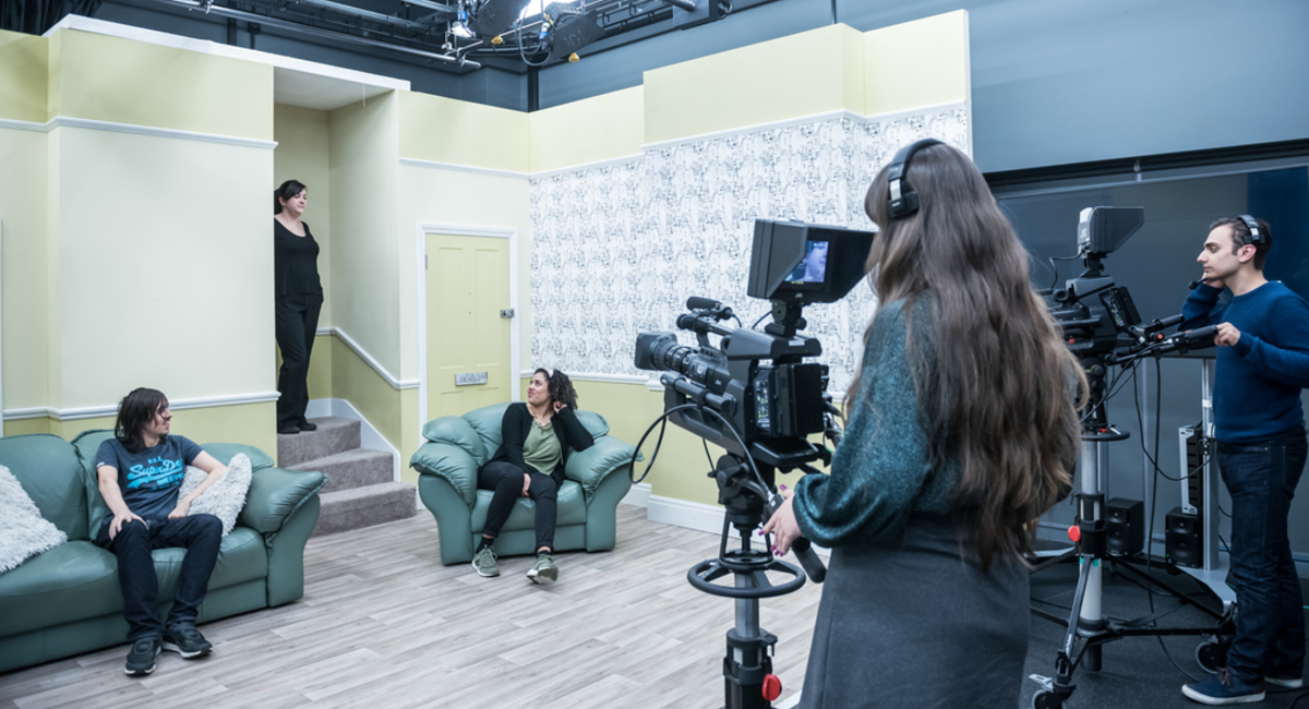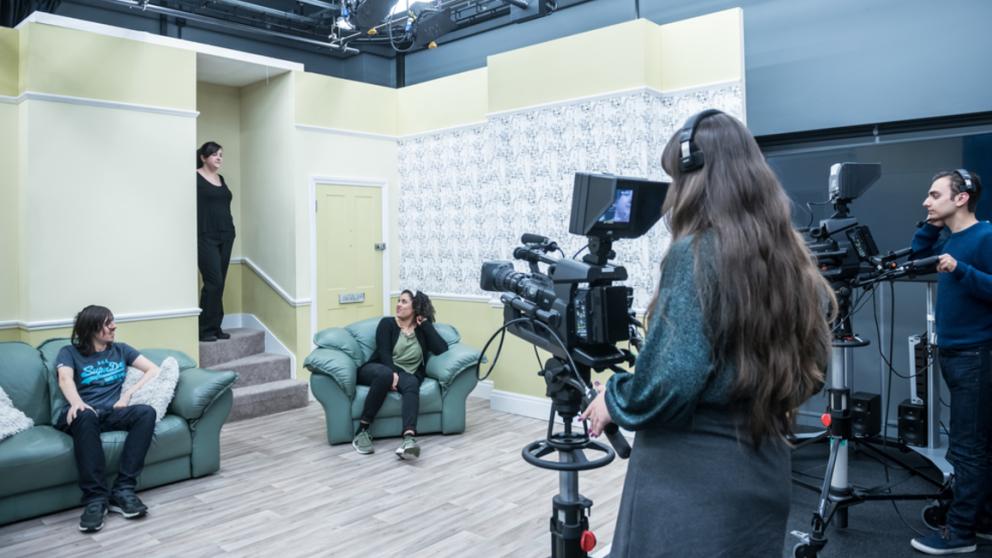 On this module, you will explore the principles and techniques of acting for the screen, including studio recording, location filming, multi and single camera work. There will be practical taught sessions every week, moving from studio 3-camera set-ups through to single-camera location shoots. You will: