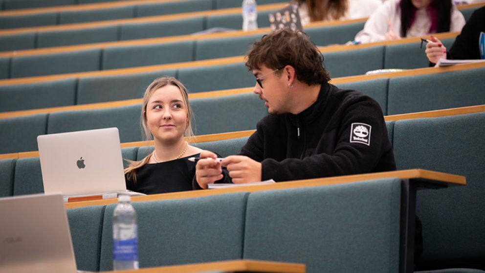 Female and male student in Criminology and Counselling lecture