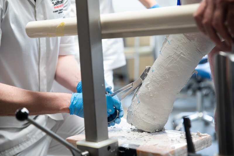 Each student will complete a 13-week full-time placement in each discipline in year three, 13 weeks of full-time Orthotics placement and 13 weeks of full-time Prosthetics placement. During these final placements, you are expected to be able to consolidate your learning from all of your previous learning. You will be exposed to an ever-expanding variety of case studies where you will continue to further develop your clinical skills. You will develop a greater understanding of the rehabilitation process and, in particular, develop your skills in presenting and delivering viable management plans, using problem-solving skills to apply functional prescriptions. You will also be able to demonstrate your ability to competently execute the key clinical skills (casting, measurement, cast modification, prosthetic/orthotic fitting) necessary to fulfil the agreed prescription.