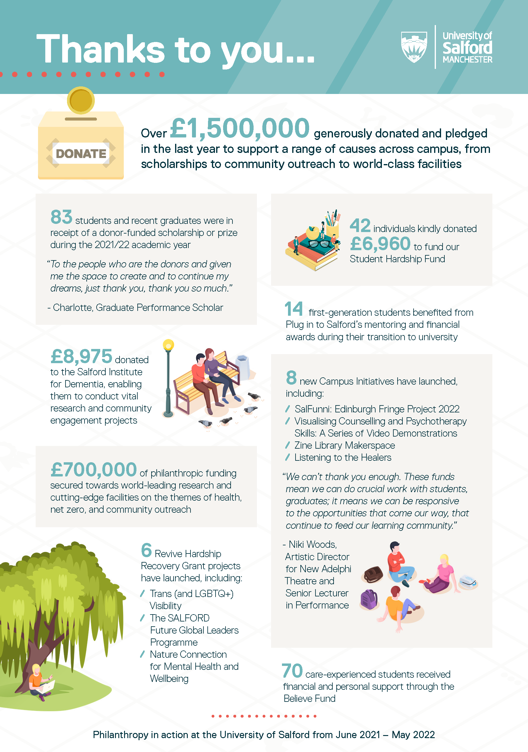 To read about Philanthropy in action within our community and difference our supporters have made, see below. We would like to say a massive thank you to every individual and organisation that has helped us to create incredible opportunities for everyone at Salford.
