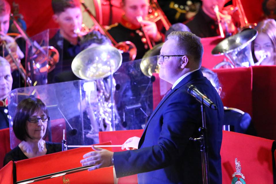 Not only were they joined on stage by several University of Salford Music students who played in the band, having taken part in a workshop during the afternoon, but they also played a three-movement piece that was directed by our final year conducting students on the Musical Arts Course; David McGlynn, Alistair Harrison, and Adam Stretton, who joined the Marines at their base earlier in the week for some intensive coaching.