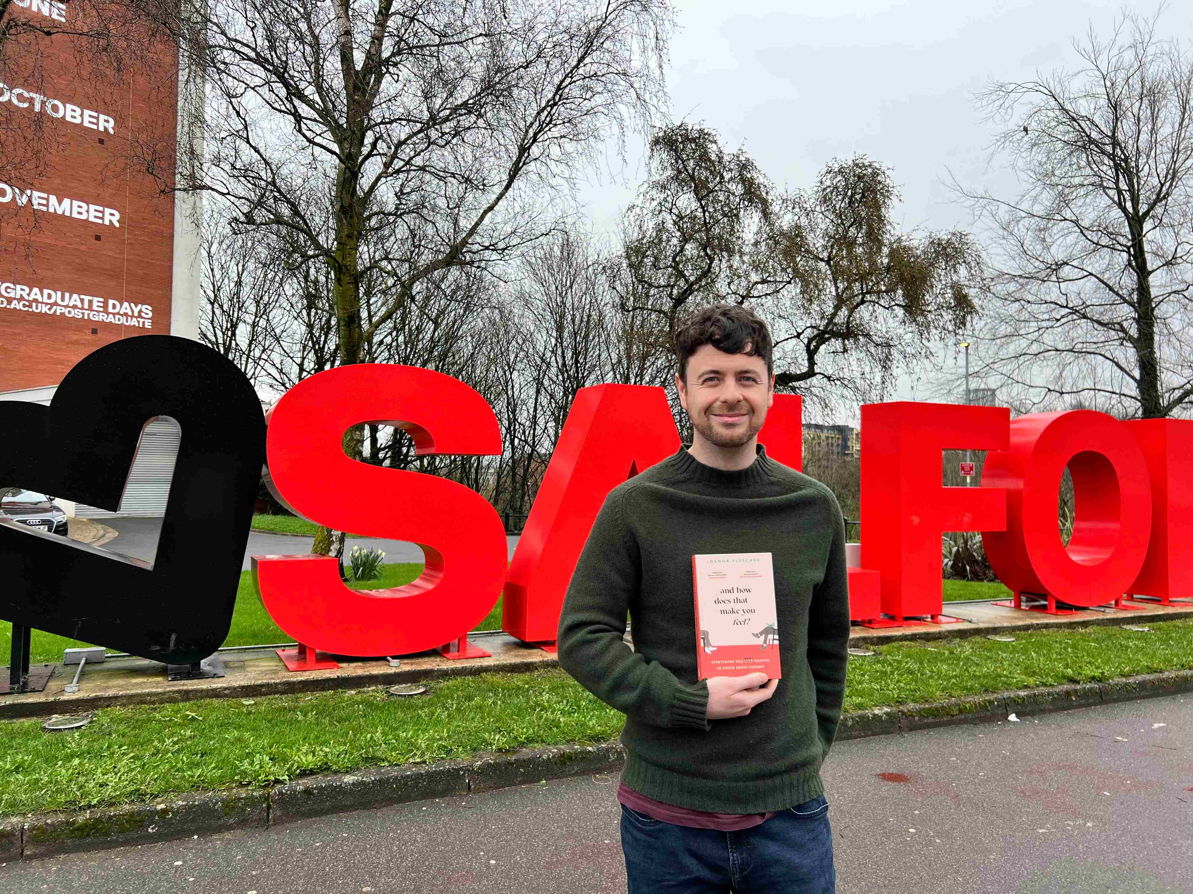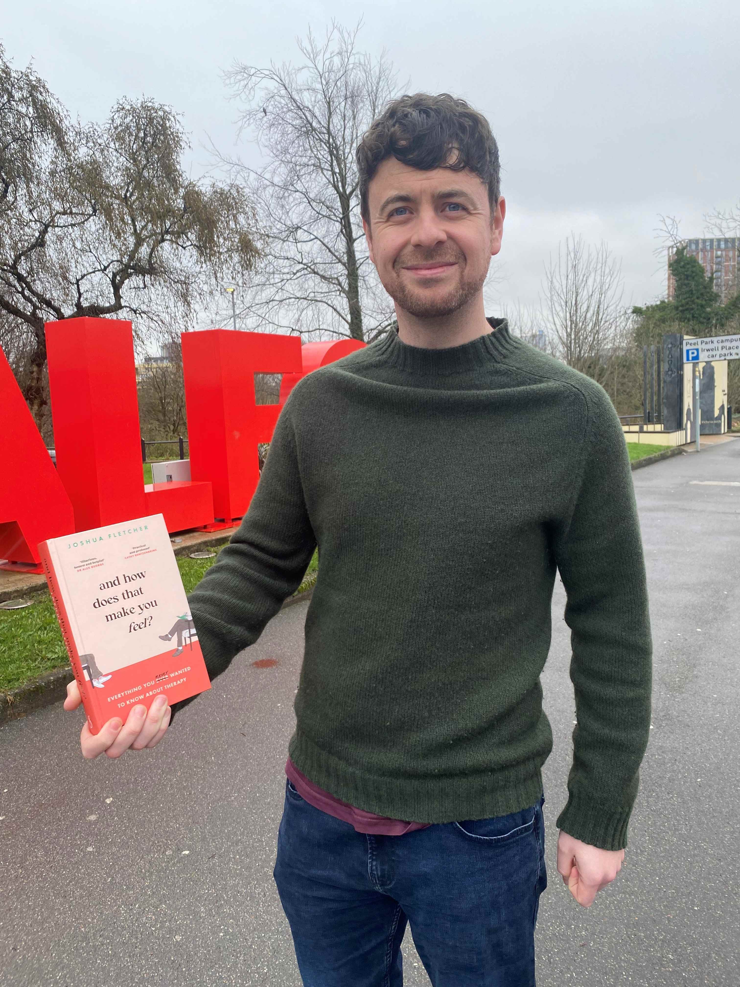 Josh Fletcher studied Cognitive Behavioural Therapy (CBT) at the University of Salford and is now a highly regarded therapist and author. His latest book And How Does That Make You Feel? is a top seller on Amazon, and has been praised in media including The Guardian, the Times and Sky News. Last week Josh popped back to the University for a brew and a chat about his current success.