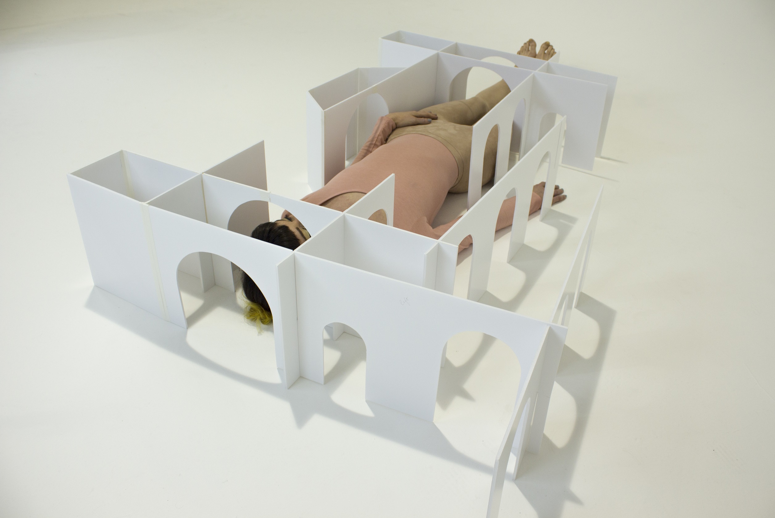 Speed considers the houses in Energy House 2.0 as 1:1 models, and in addition to testing materials and energy use, has engaged with the facility’s spaces as sites ripe for challenging ideas and exploring new possibilities. Speed’s work seeks to question how the minimal space requirements and heteronormative family-based design of many new-build houses affect the way we interact and cohabit.