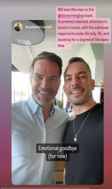 BBC Morning Live presenter Gethin Jones praised Adam for his work on the programme in a post on his Instagram page last week.