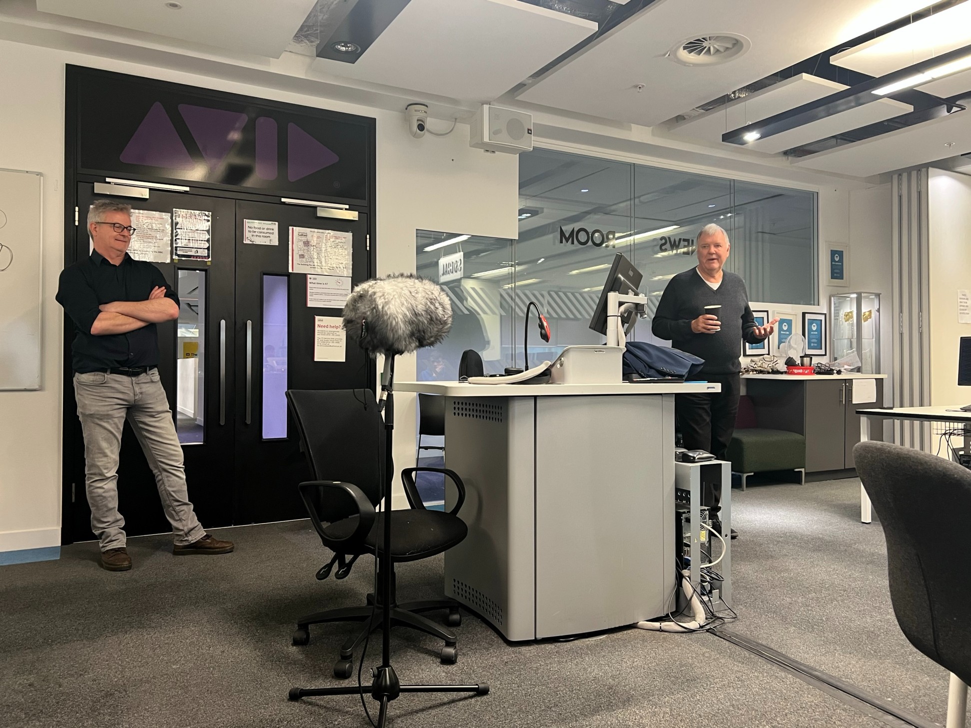 Clive’s visit to our MediaCity campus came after commentating on the thrilling Manchester City and Real Madrid match in the UEFA Champions League at the Etihad Stadium the night before.