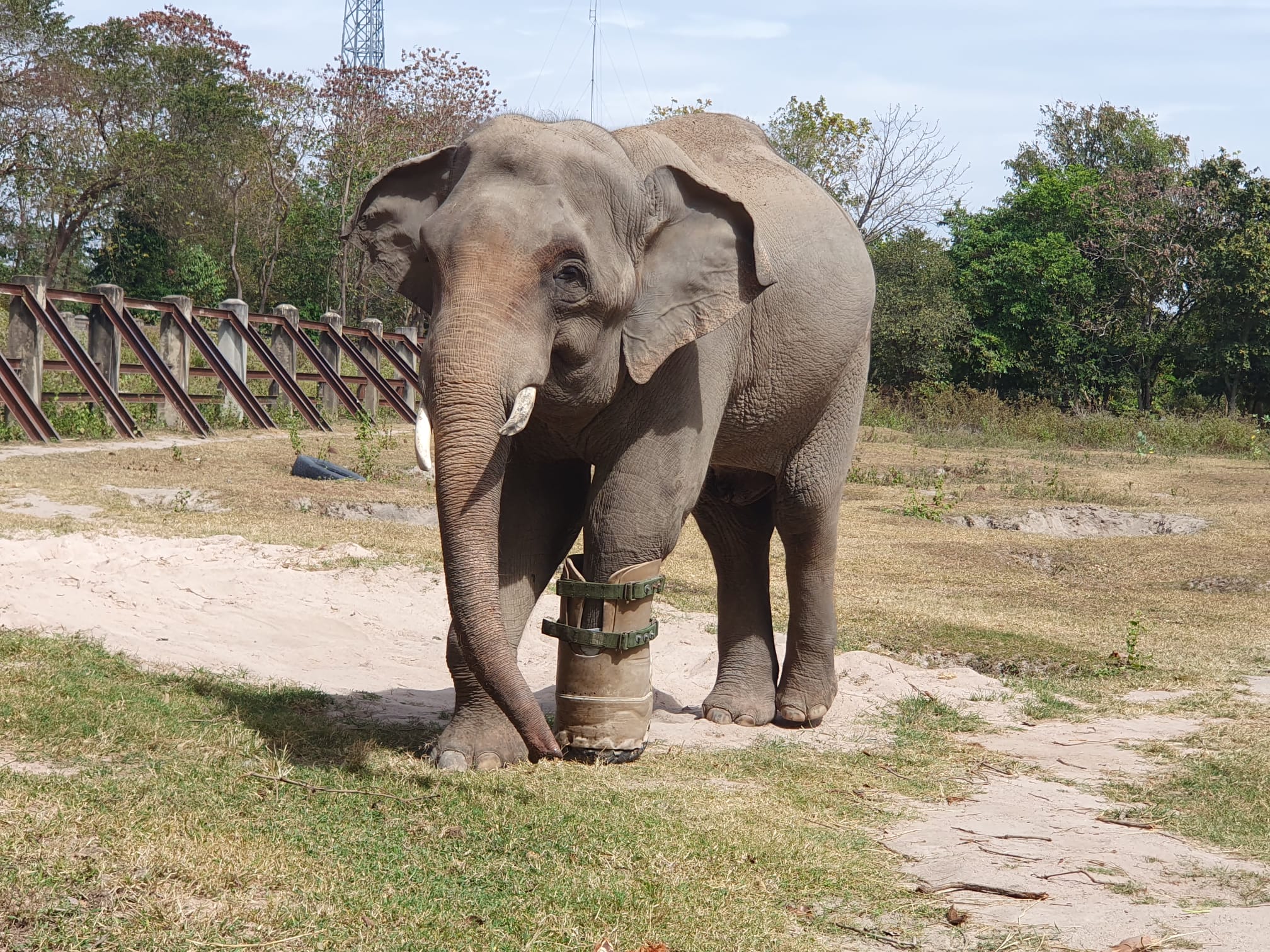Salford team meet Chhouk, the elephant with a prosthetic leg, on Cambodia visit